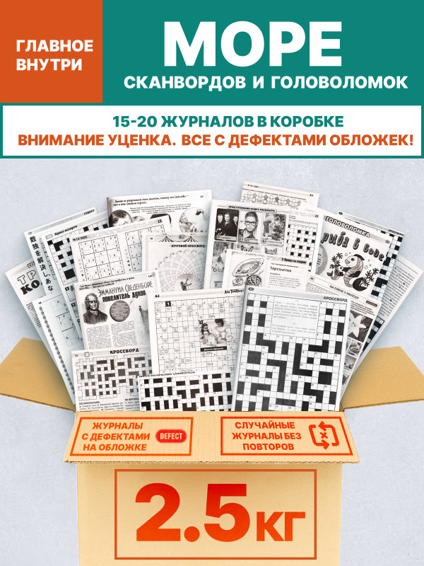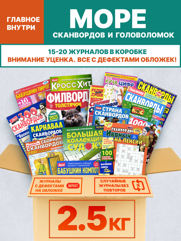 Уценка. Поврежденные обложки. Набор: 2,5 кг кроссворды, сканворды, судоку.