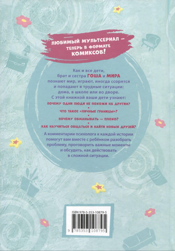 Что делать, если тебя обижают? Как справиться со злостью? Почему плакать — совсем не стыдно? Как научиться общаться и завести новых друзей? На эти и другие важные вопросы Мире и Гоше помогают ответить мама и папа.