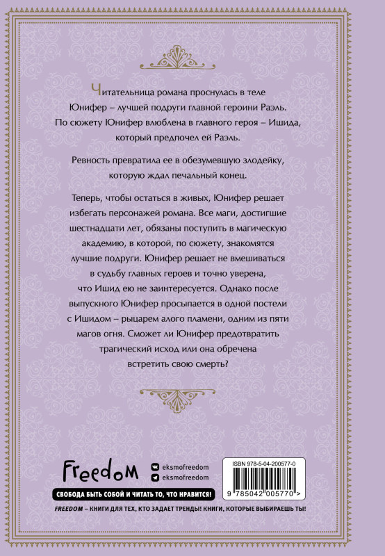 Теперь, чтобы остаться в живых, Юнифер решает избегать персонажей романа. Все маги, достигшие шестнадцати лет обязаны поступить в магическую академию, в которой по сюжету знакомятся лучшие подруги. Юнифер решает не вмешиваться в судьбу главных героев и точно уверена, что Ишид ей не заинтересуется. Однако после выпускного Юнифер просыпается в одной постели с Ишидом — рыцарем алого пламени, одним из пяти магов огня. Сможет ли Юнифер предотвратить трагический исход или она обречена встретить свою смерть?