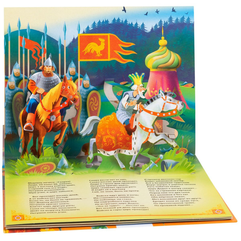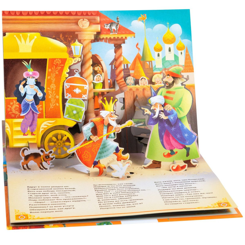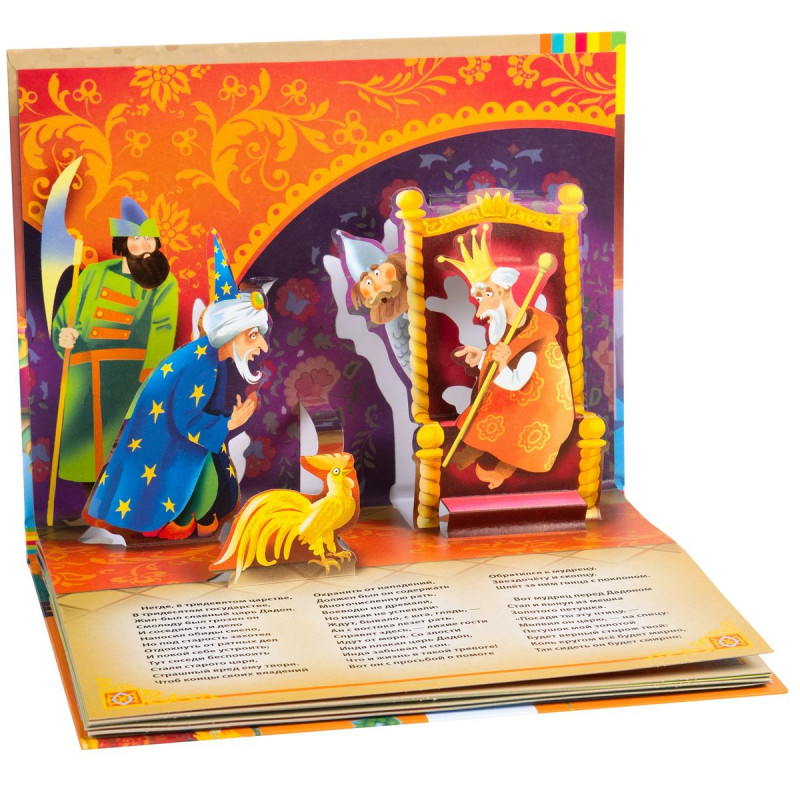 Открыв эту книгу, ребенок познакомится с чудесной сказкой А.С. Пушкина о золотом петушке с красочными иллюстрациями А. Мухтаруллина. В книге представлен полный текст сказки без сокращений. На каждом развороте раскрываются объемные панорамные конструкции, и любимые персонажи оживают, а книжка превращается для малыша в настоящий театр!