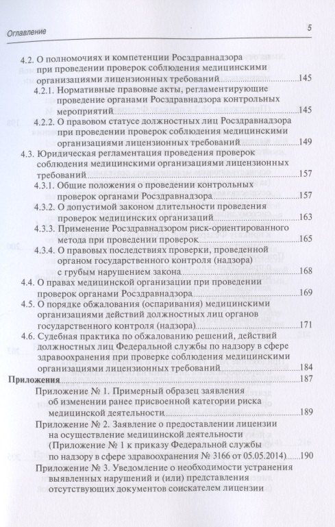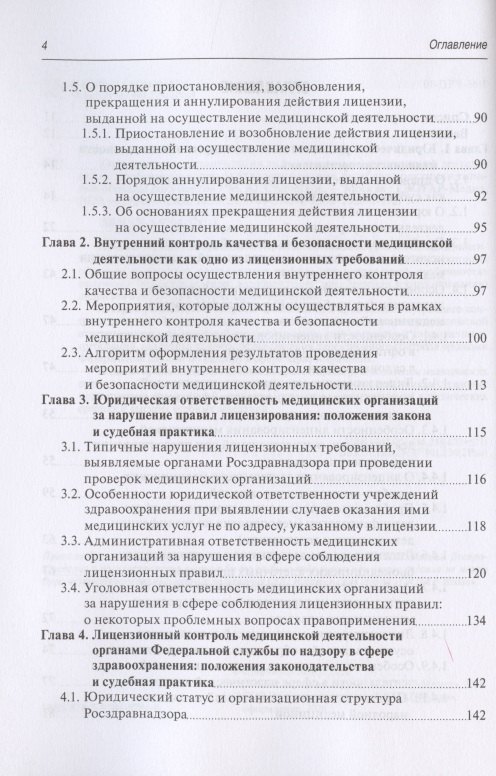 Автором рассмотрены вопросы организации и проведения внутреннего контроля качества и безопасности медицинской деятельности, основания юридической ответственности учреждений здравоохранения при нарушении лицензионных требований, различные аспекты осуществления лицензионного контроля органами Федеральной службы по надзору в сфере здравоохранения. Издание предназначено медицинским работникам, руководителям медицинских организаций, экспертам — организаторам здравоохранения, работникам страховых медицинских организаций, юристам, студентам медицинских и юридических средних и высших учебных заведений.