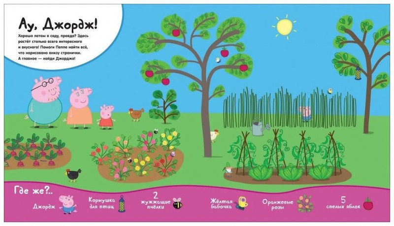 «Найди и покажи» - красочная книга на картоне с сюжетными иллюстрациями по мультику про очаровательную свинку Пеппу. Малышу предлагается внимательно рассмотреть картинку и найти определенные предметы или героев. Книжки серии расширяют кругозор, тренируют внимание и память, развивают зрительное восприятие, мышление.