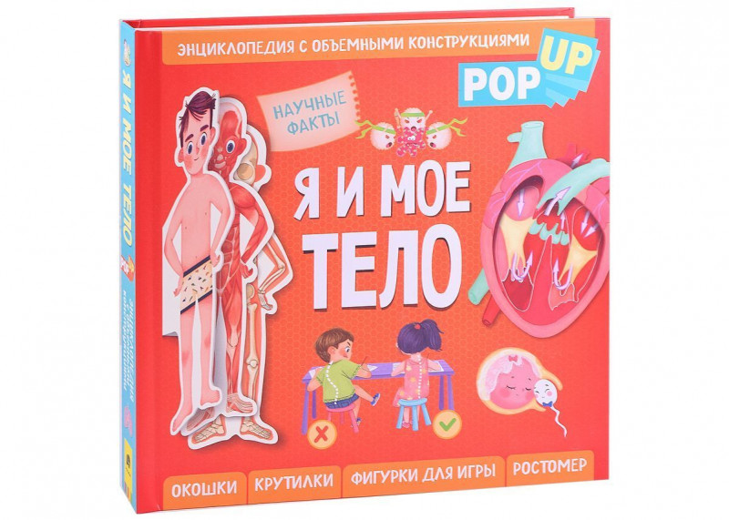 Большая, красочно иллюстрированная энциклопедия про тело человека для мальчиков и девочек от 5-ти лет. Книга с объемными Pop-Up конструкциями и двигающимися элементами, которые можно открывать, тянуть, толкать, крутить – отличный подарок ребенку и его родителям, ведь ее интересно изучать всей семьей!