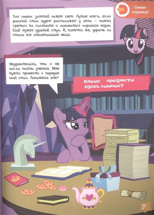 Сумеречная Искорка обожает читать и учиться. Она точно знает, что это совсем не скучно. И научит тебя весело получать знания и радоваться новым открытиям. Сможешь составить своё расписание, а Искорка посоветует, как ему следовать.