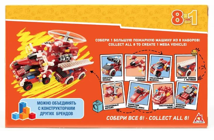 Объедини все 8 наборов Wise Block серии "Пожарные" и собери большую пожарную машину!