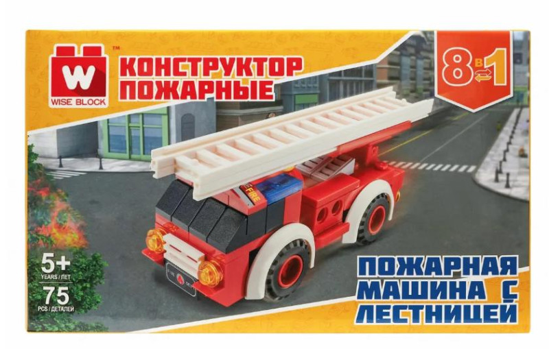 Вайс Блок. Конструктор пожарная машина с лестницей 8-в-1.TM Wise Block