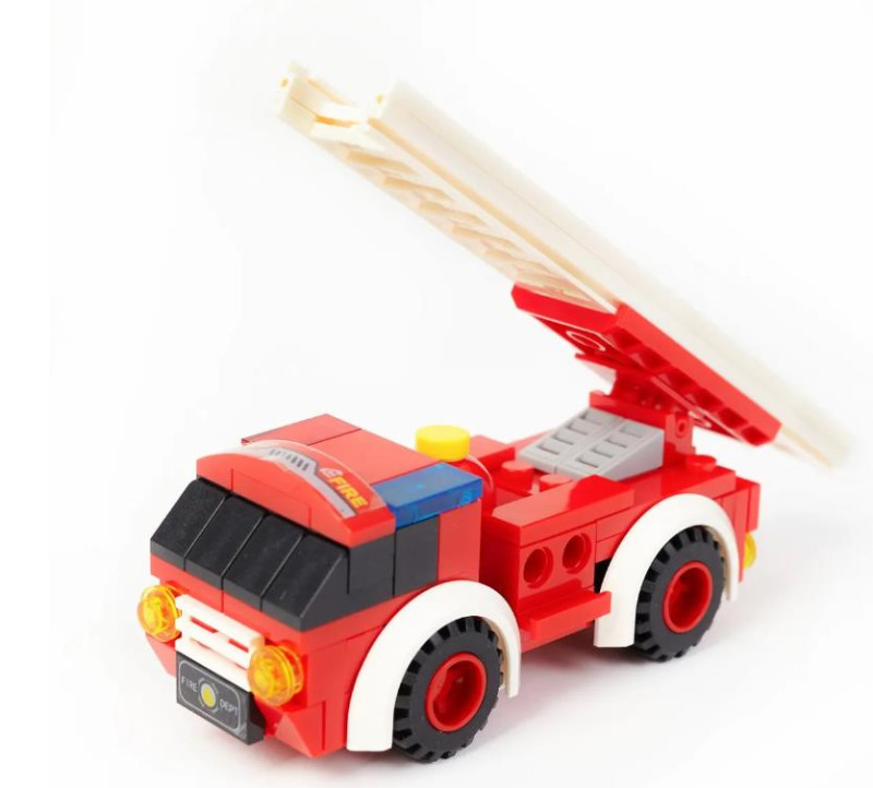 Как только поступает вызов, первой на пожар отправляется пожарная машина с лестницей. Яркая красно-белая машина с деталью в виде резервуара для воды, спрятанного за кабиной водителя, мчит к горящему дому! Заниженная подвеска и широкие рельефные колеса делают машину особенно устойчивой. А с помощью выдвижной лестницы с возможностью задать наклон, ты сможешь быстро добраться до очага возгорания даже на высоком этаже!