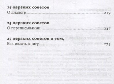 Вендиг Ч. 250 дерзких советов писателю / Чак Вендиг; Пер. с англ. — М. : Альпина Паблишер, 2023. — 299 с. (Серия «Сценарное и писательское мастерство»). «250 дерзких советов писателю» — это пропитанный выпивкой, остроумный и честный дзен-взгляд на сочинительство. В книге емкие, смелые, местами непристойные, но до безобразия вдохновляющие советы от писателя и сценариста Чака Вендига. Как латать сюжетные дыры и не угробить диалог? Зачем нужен персонаж с гнильцой? Почему первый черновик романа надо писать как бог на душу положит? Автор не будет с вами церемониться — возьмет за шкирку и протащит по всему литературному процессу, наставляя в пути: «цель первая: закончить д#рьмо, которое начали», «слишком много участников только портят оргию», «раздутые описания — от вашего раздутого эго», а «объяснение — песок в трусах истории». Поверьте, таких книг о писательстве вы еще не встречали. УДК 808.1 ББК 83.02