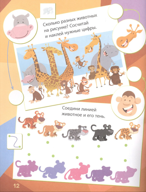 Веселый зоопарк: сборник развивающих заданий. 130 наклеек