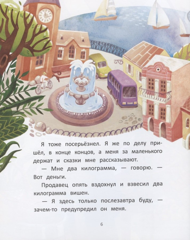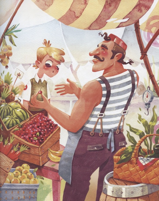 «Вишнёвый пирог — это вам не фунт изюму, — сказала нам мама. — Если уж хотите на ужин пирог, то извольте слушать мою команду!» И мы выслушали: папа идёт в магазин за сметаной, маргарином, дрожжами и мукой, я иду на рынок за вишнями.