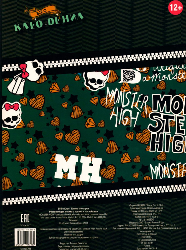 Все о Клео де Нил. Школа монстров. Развивающая книжка + наклейки (-0530-3)