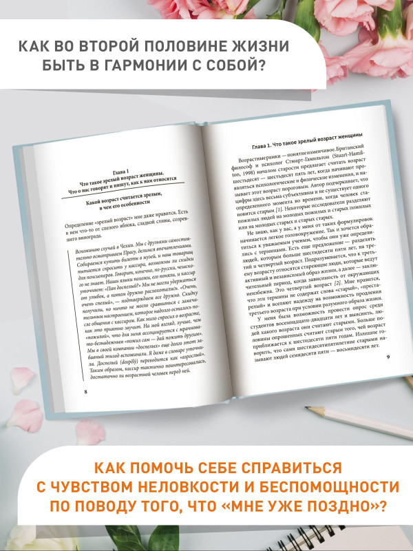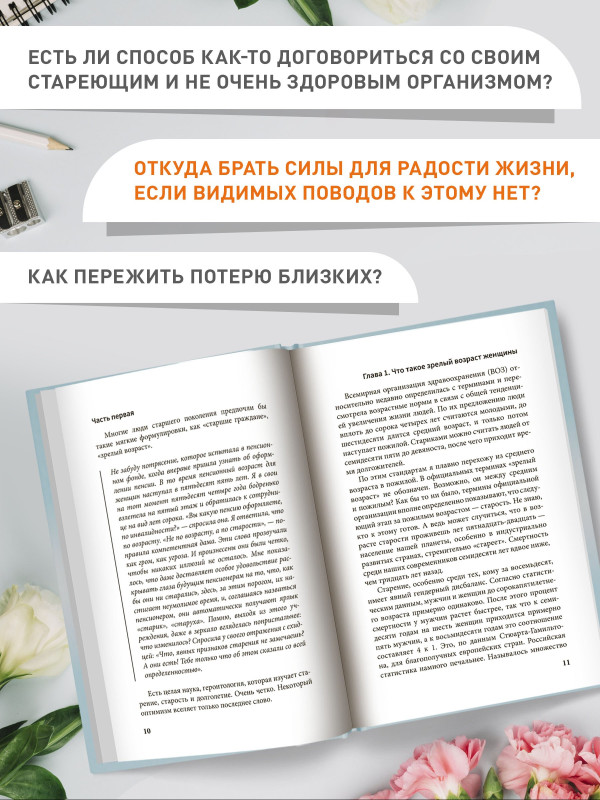 Эта книга - для женщин, кому "за...", прошедших непростой жизненный путь и подошедших к зрелому возрасту, который наступил неожиданно. Вряд ли кто-то ожидает старость, готовится к ней. Отсюда - много разочарований в себе, близких, в мире, частая грусть, страх смерти, депрессивное состояние. И недоуменный вопрос окружающих: "Чего же вы хотите? Возраст!" Как во второй половине жизни быть в гармонии с собой? Как помочь себе справиться с чувством неловкости и беспомощности по поводу того, что "мне уже поздно"? Есть ли способ как-то договориться со своим стареющим и не очень здоровым организмом? Откуда брать силы, чтобы радоваться жизни, если видимых поводов для этого нет? Как пережить потерю близких?