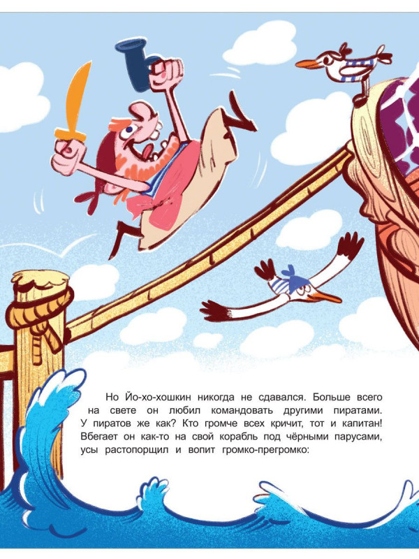Самая настоящая пиратская история для самых настоящих пиратов и пираток - только маленьких. А маленьких пиратов в пути часто поджидают большие неожиданности! Акулы, львы и даже людоеды… Только успевай уворачиваться! Но всё непременно закончится хорошо. Главное, подкрепиться питательным супом. Так что повторяем вместе: "Ложку за Йо-хо-хошкина, ложку за его приятеля крокодила…" - и читаем книжку!