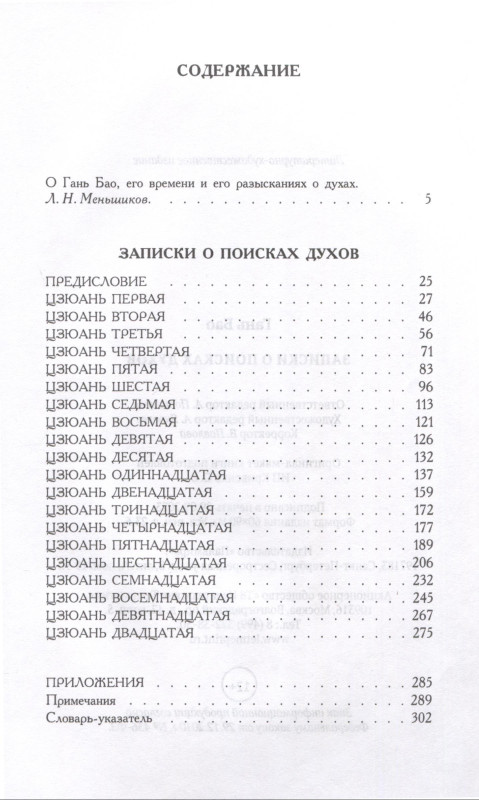 "Записки о поисках духов" Гань Бао - собрание сяошо, коротких сюжетных рассказов о всякого рода необычных, чудесных, невероятных происшествиях. Эти рассказы автор не только находит у древних, но и записывает от современников - служащих, начальников почтовых станций, простолюдинов, крестьян, чьи имена известны только в записи Гань Бао, - чтобы окончательно развеять сомнения читателя в существовании сверхъестественного мира духов и демонов.