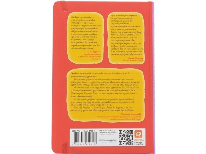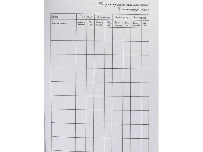 Это рассчитанная на год тетрадь для записи тренировок (недатированная) — с удобными графами, мотивирующими фразами и картинками, а также пояснительными текстами. Создана людьми, которым такой не хватало, опробована на добровольцах, завизирована профессионалами, — работает.