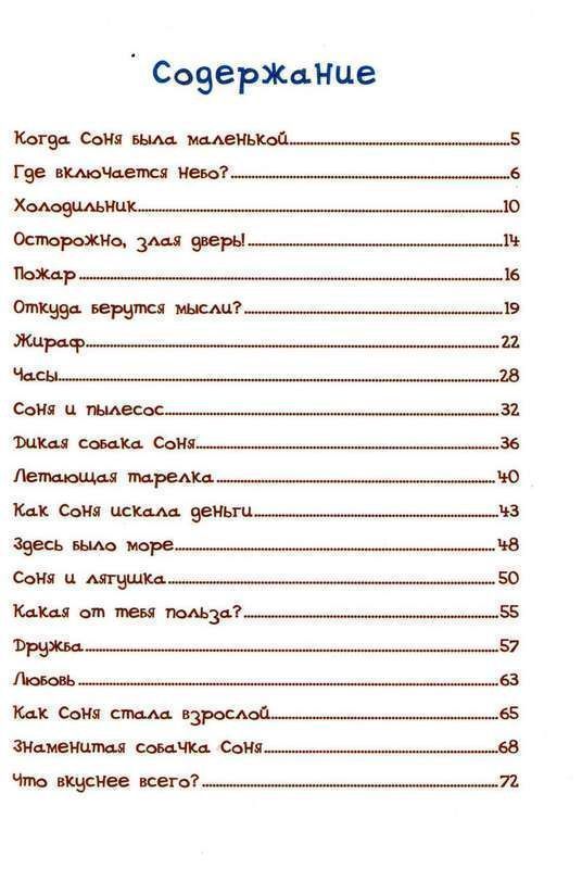 Долгожданное продолжение истории об умной собачке Соне, в котором читатели обязательно встретятся со старыми героями и поближе познакомятся с новыми, а еще узнают, что может быть вкуснее сосисок, кто разбил Соне сердце, как она снялась в рекламе, училась определять время и, конечно, как она стала знаменитой. Иллюстрации Евгения Антоненкова.